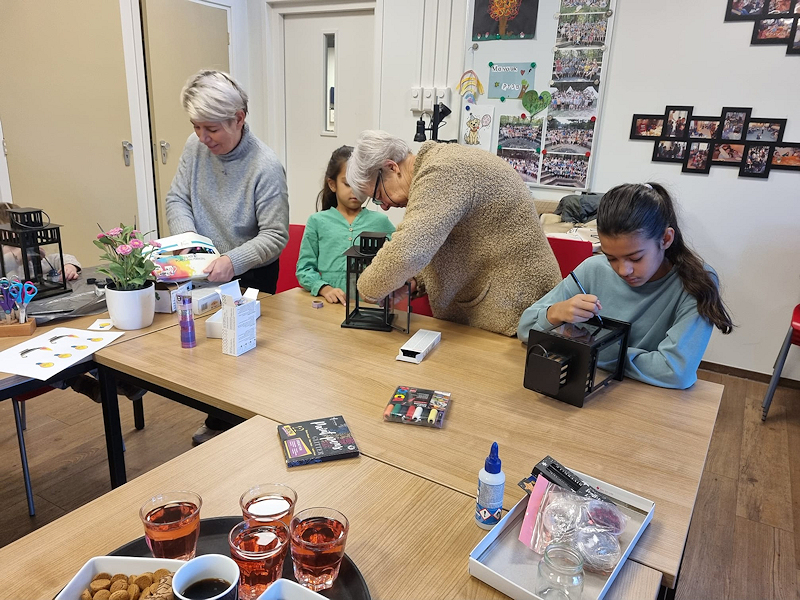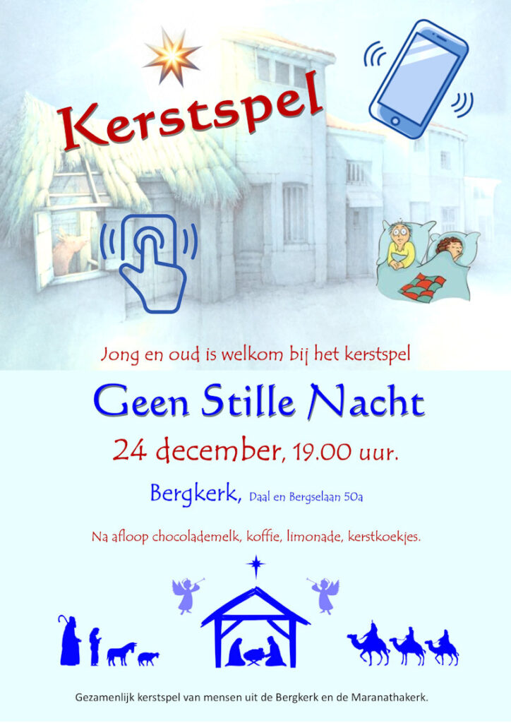Plotseling kwam er iemand op een fiets de kerkzaal binnen rijden. Een pakketbezorger, nee een geluksbezorger die pakjes geluk rond brengt. Op het liturgisch centrum was het pakhuis van GLS gelukservice met stapels pakketten. De geluksbezorger had een pakketje voor de kinderen van de kindernevendienst bij zich. De kinderen waren reuze benieuwd naar de inhoud van dat pakje. Er bleek een zaklamp in te zitten. Om iets te zien als het donker is. Daarbij hoorde een poster met een bericht van de profeet Jesaja hoe in het licht vreedzaam met elkaar te leven. Daarna gingen de kinderen naar beneden om in ’t Valkennest verder bezig te gaan met het verhaal en windlichten.