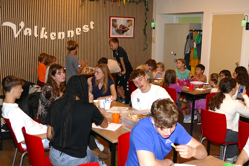 Het was heel feestelijk en gezellig. Kinderen, tieners en leiding waren zichtbaar blij met het nieuwe onderkomen en de start van een nieuw jeugdwerkseizoen.