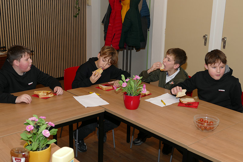 Tussen het zoeken en beantwoorden van de vragen werd er gezamenlijk tosti gegeten. Na de prijsuitreiking was er nog een salade vers fruit met slagroom.